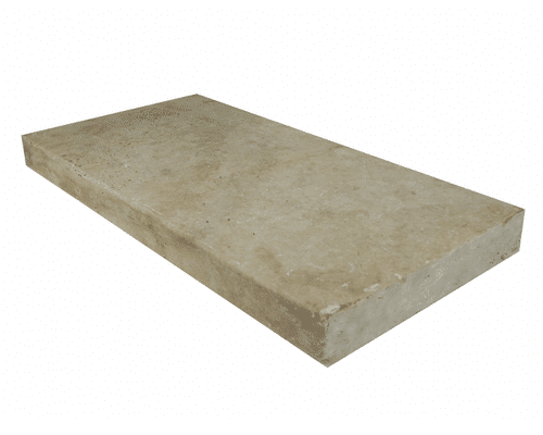 Ivory eased edge coping brings soft ivory tone and eased edge for pool and patio. Natural stone. Chesshir Stone & Rock Supply.