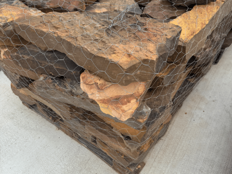 This stone is strong and durable. It holds up well in weather and heavy use. The rough texture and natural red color make it a great choice for walls, fireplaces, and landscape features. Available in different sizes; sold in bulk by the ton. Call (469) 972-6781.