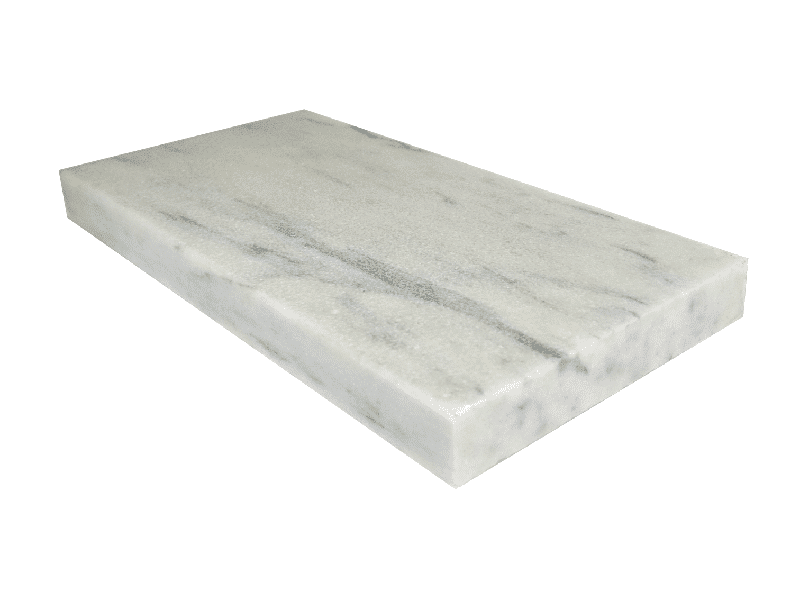 White marble sandblasted eased edge coping adds a bright, slip-resistant edge to pools and patios. Call (469) 972-6781.