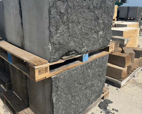 Our stone products include full bed stone, stone veneer, and slab options. Many pieces feature a saw cut finish with sawn top and bottom surfaces. This helps with clean lines and even bed depth.